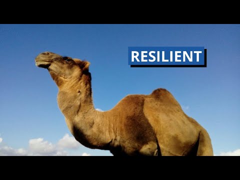 Camels are extremely resilient creatures, well adapted to life in the desert. Camels can tolerate both extreme heat and cold and go several weeks without drinking a drop of water. They eat whatever’s available, including plants with thorns or the bones and skins of dead animals. And they have a translucent eyelid to protect their eyes and help them see in sandstorms.